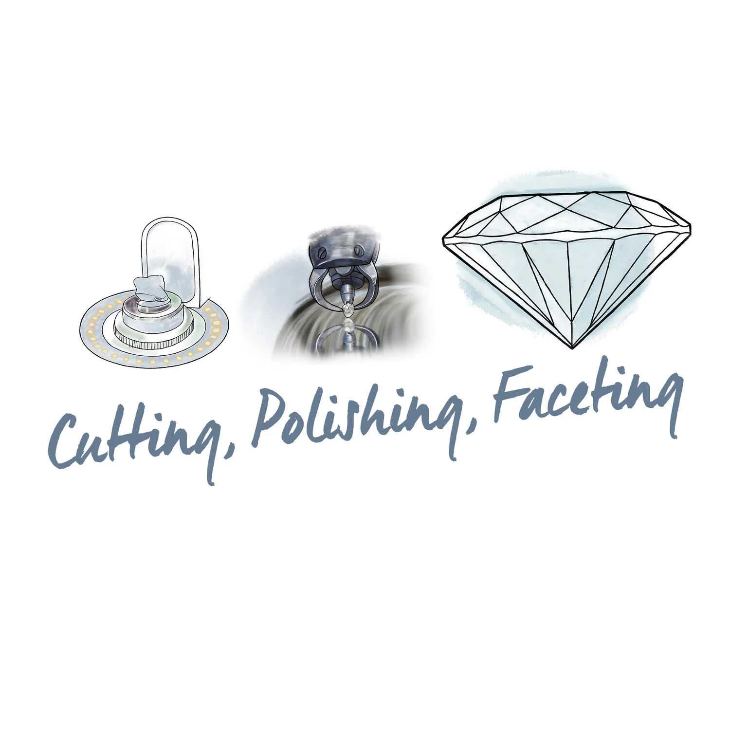After the laser cutting, rounding and windowing; the polishing artisan has a clear picture of the inclusions and predetermined shape of the diamond.